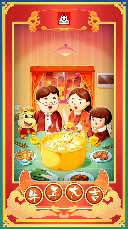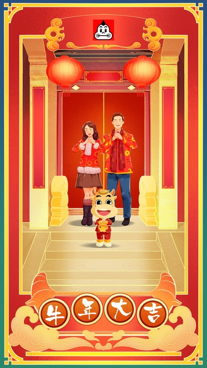 中国风插画财神爷过新年牛年商业插画《牛年大吉》