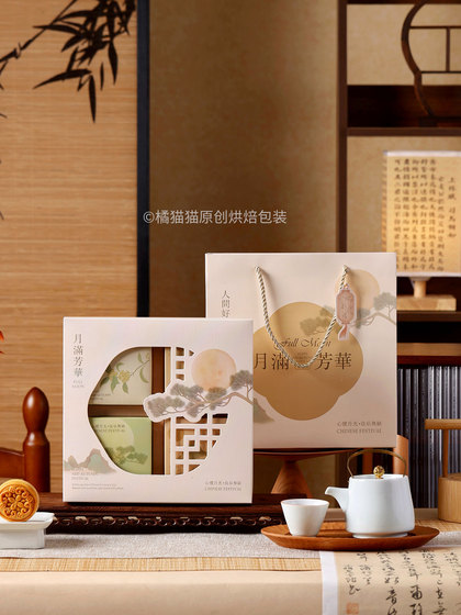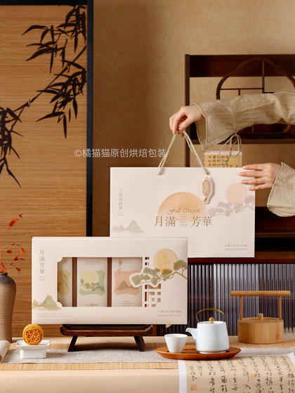 月满芳华X橘猫原创手绘月饼包装礼盒设计国风中秋包装