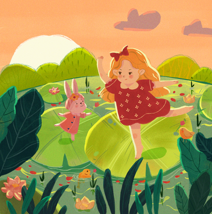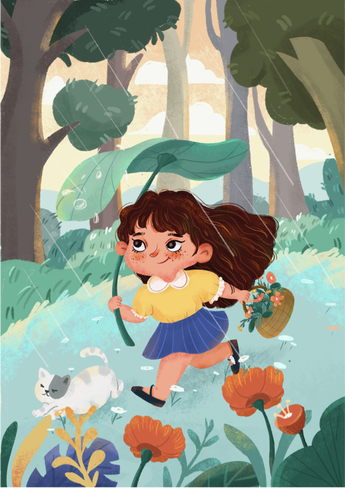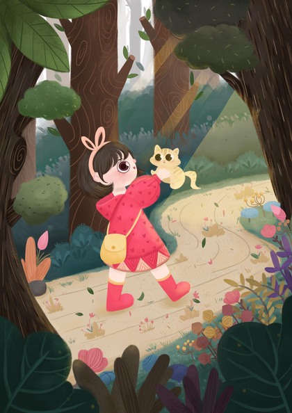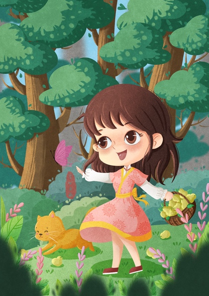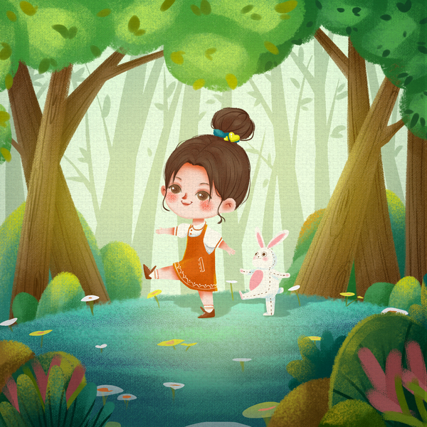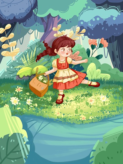夏日「绘本风森林跳舞女孩」