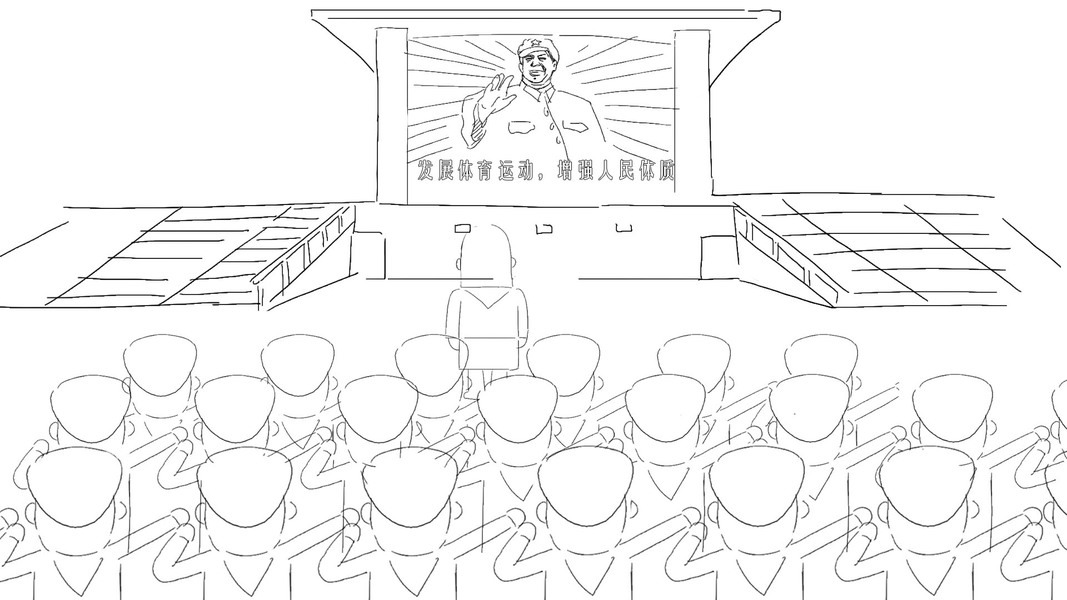 谭伯虎钢笔画作品《开国大典》