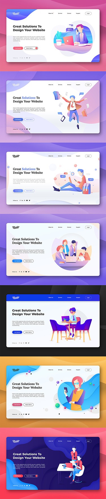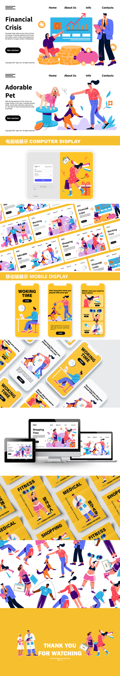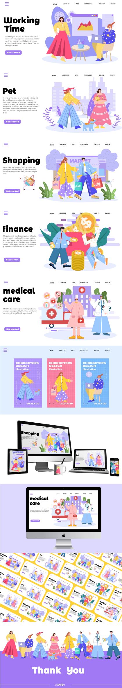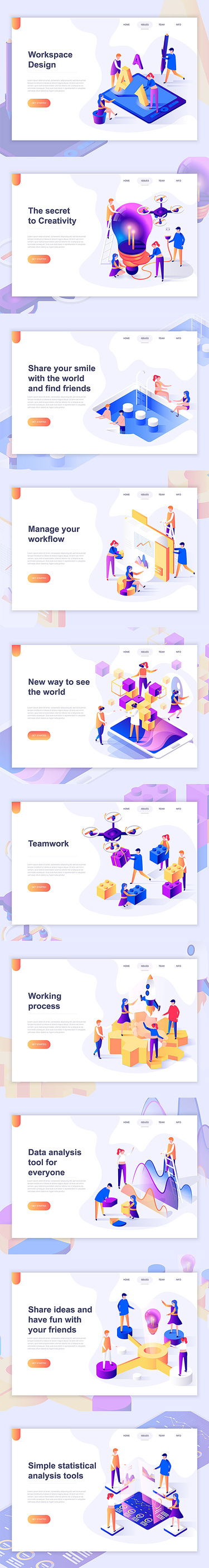 2.5D插画商务互联网金融科技网页登陆页手机素材模板