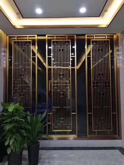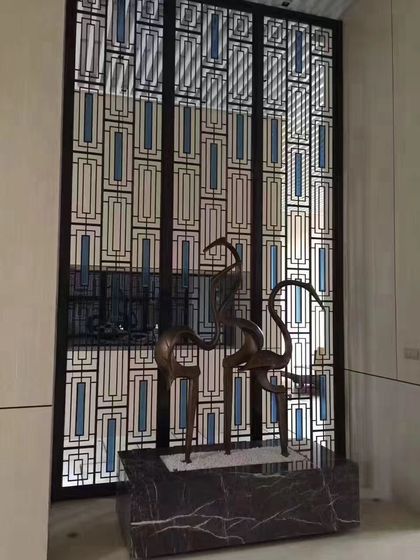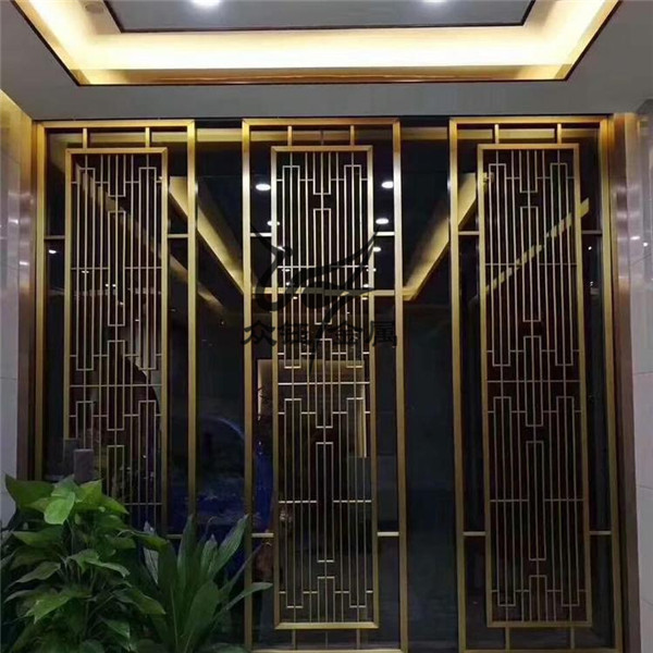 酒店大堂不锈钢玄关隔断 铝雕通花背景古典中式风格