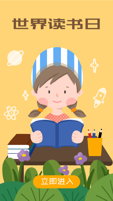 手绘风格插画开屏/Banner/弹窗(世界读书日)