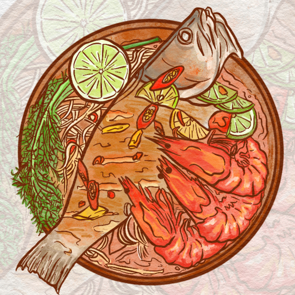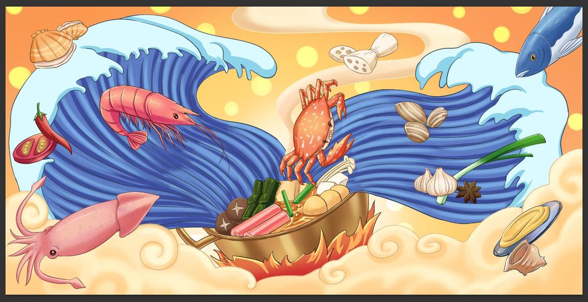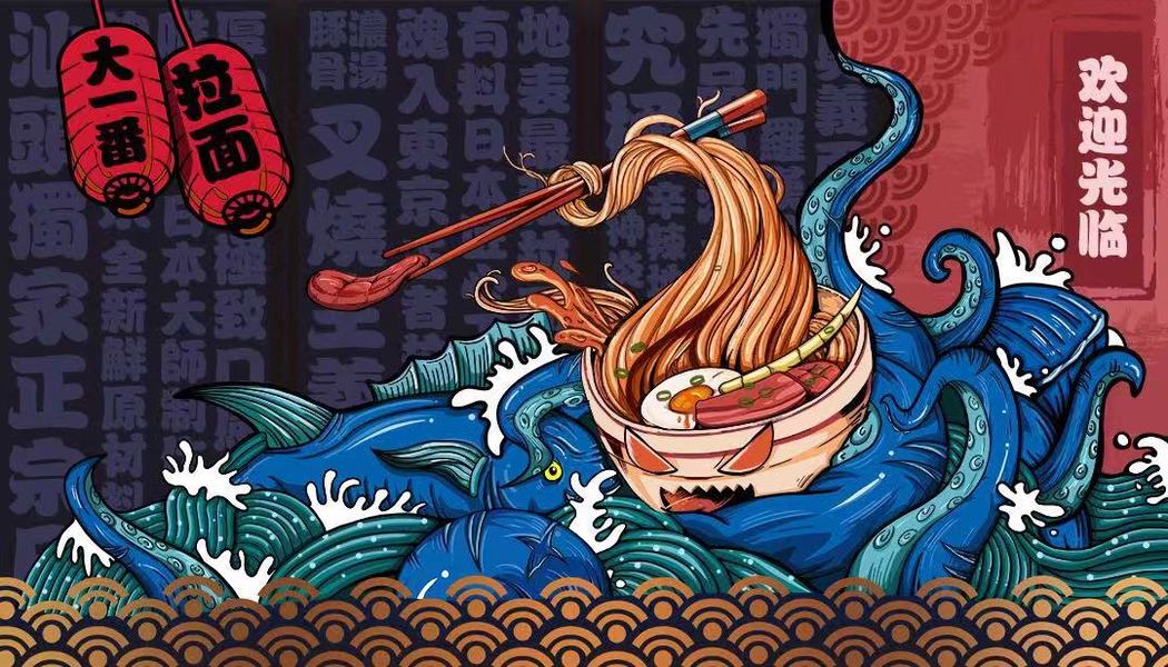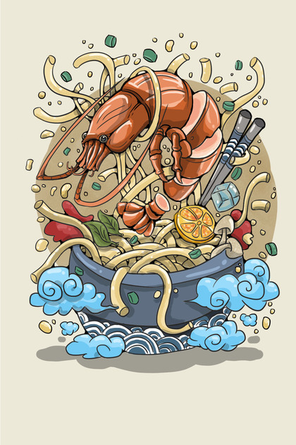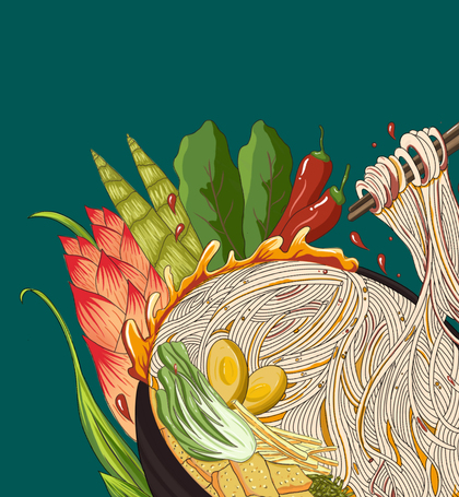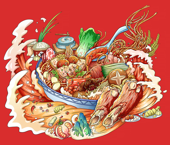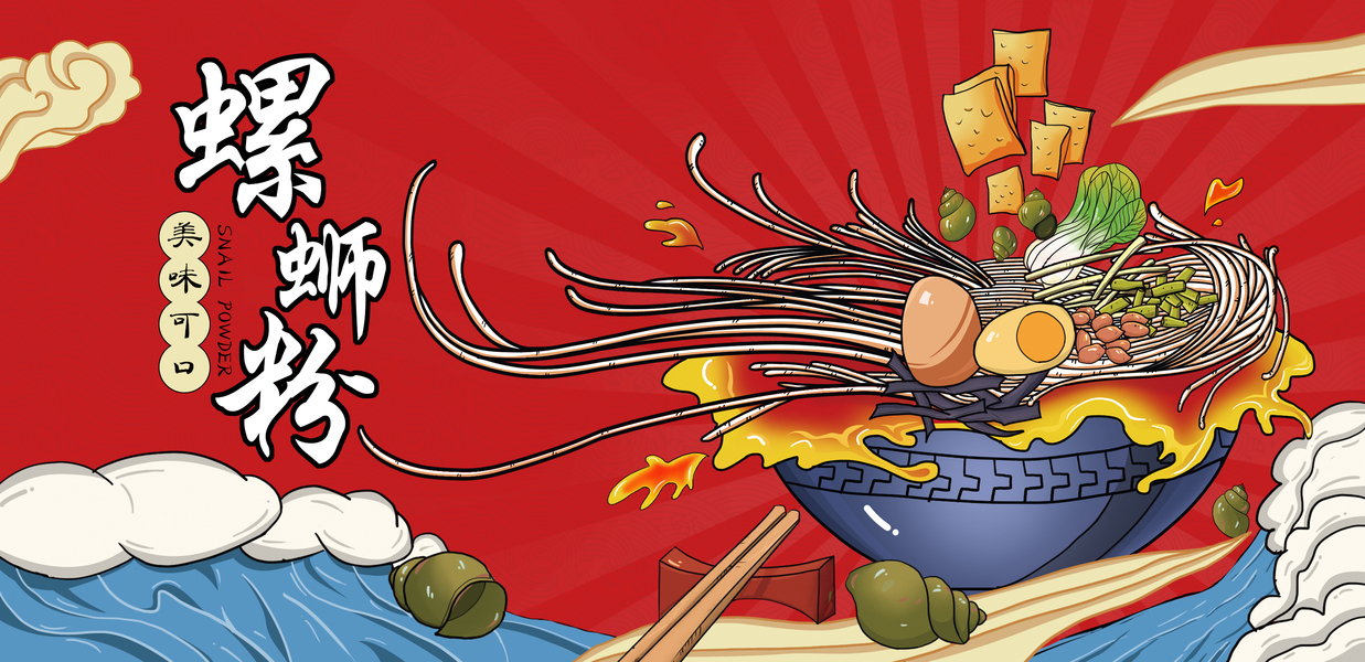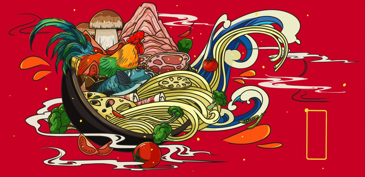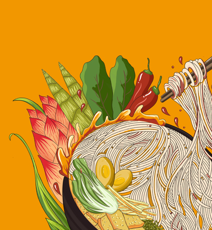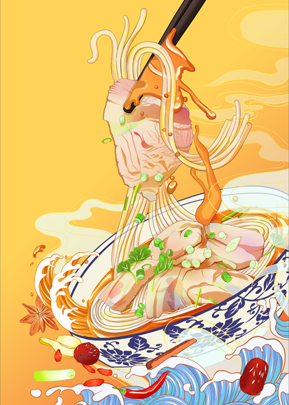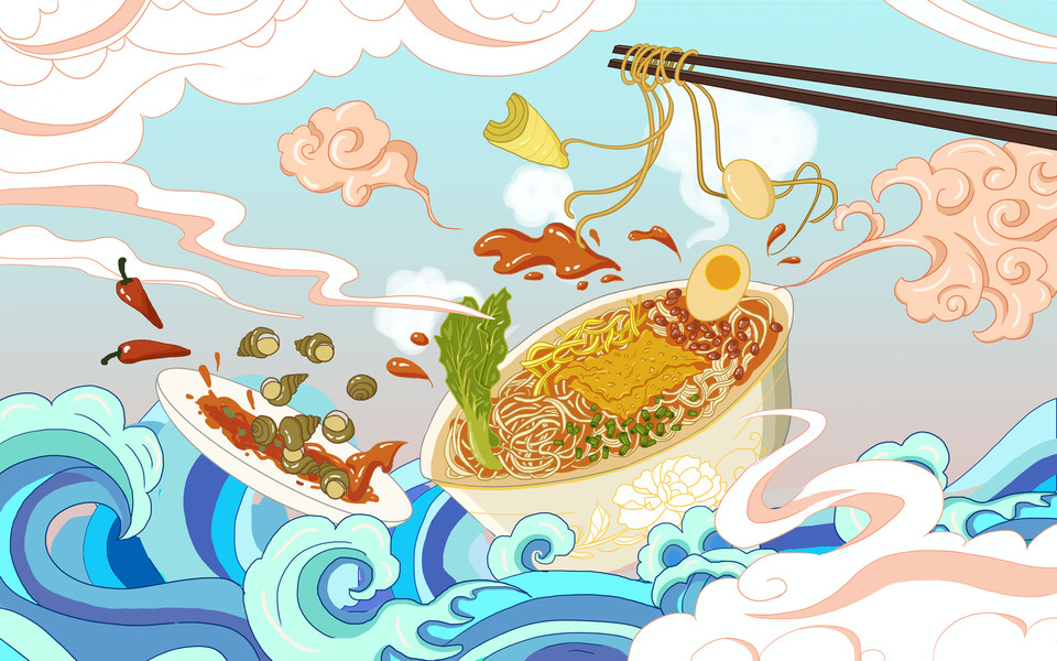 手绘美食-速食米粉/速食汤面【国潮插画】