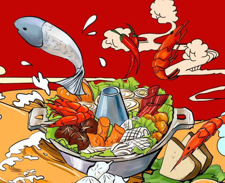 火锅店小料台墙绘设计|火锅店酱料台蘸料台设计装修