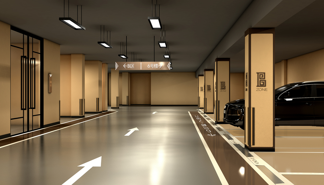 立体车库 地下车库 停车场 道路标线 效果图 若雅图像