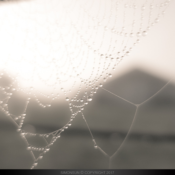 五月小景,小道旁的杨梅渐熟,雨后的蜘蛛网缀满水滴