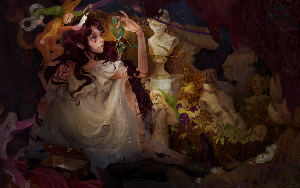 新国画 |《野草闲花逢春生》手绘民国风水墨画艺术海报