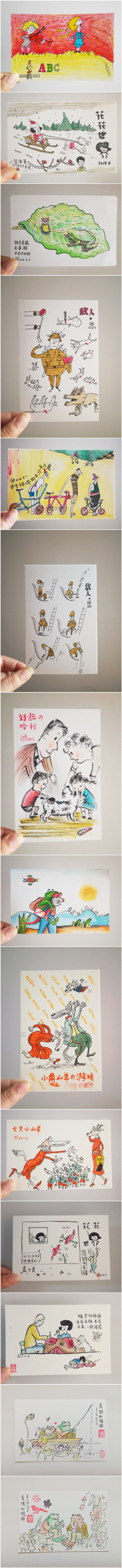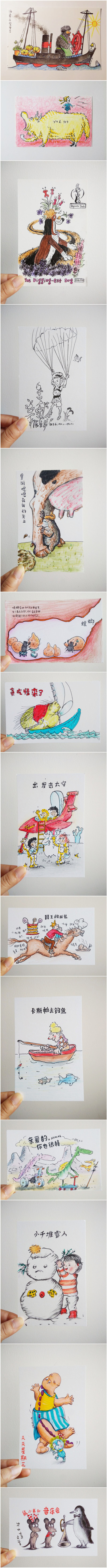 纯手绘明信片/圣诞老人/绘本/书签/祝福卡/节日