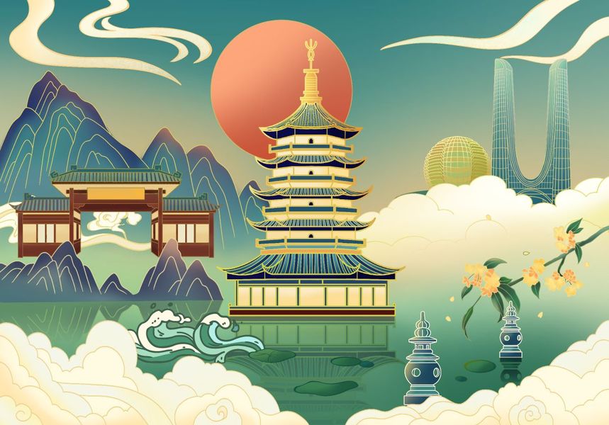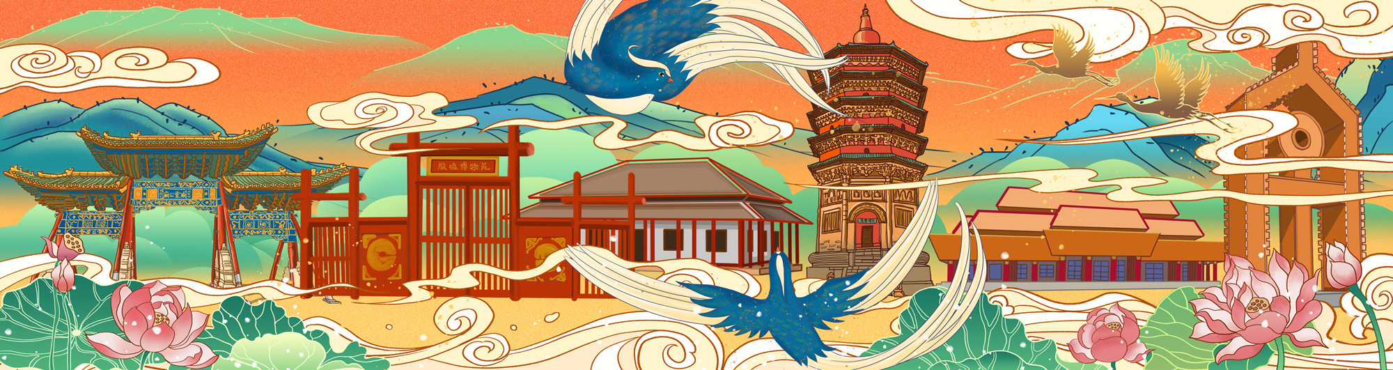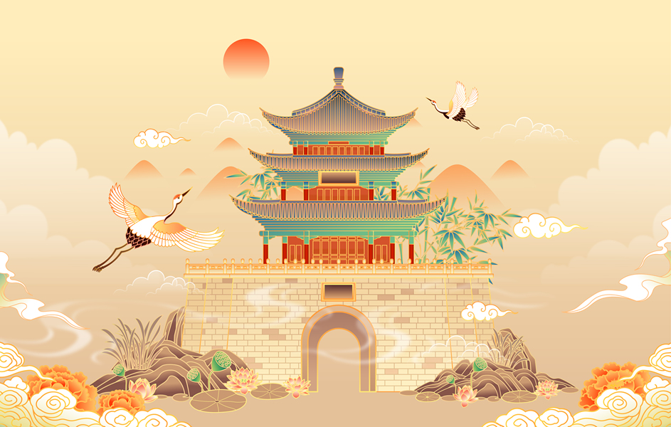 安阳城市国风历史建筑插画