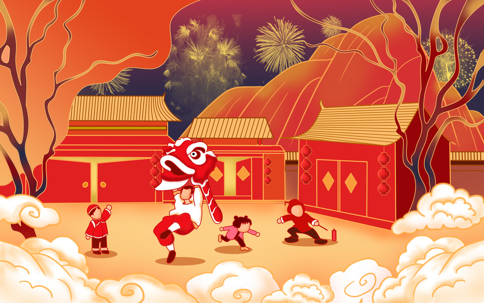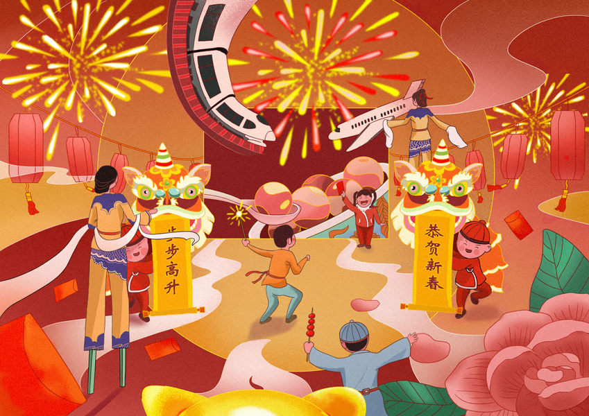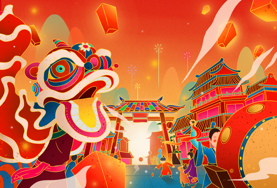 2022-虎年春节插画 《寅虎迎春,万事欢新》》