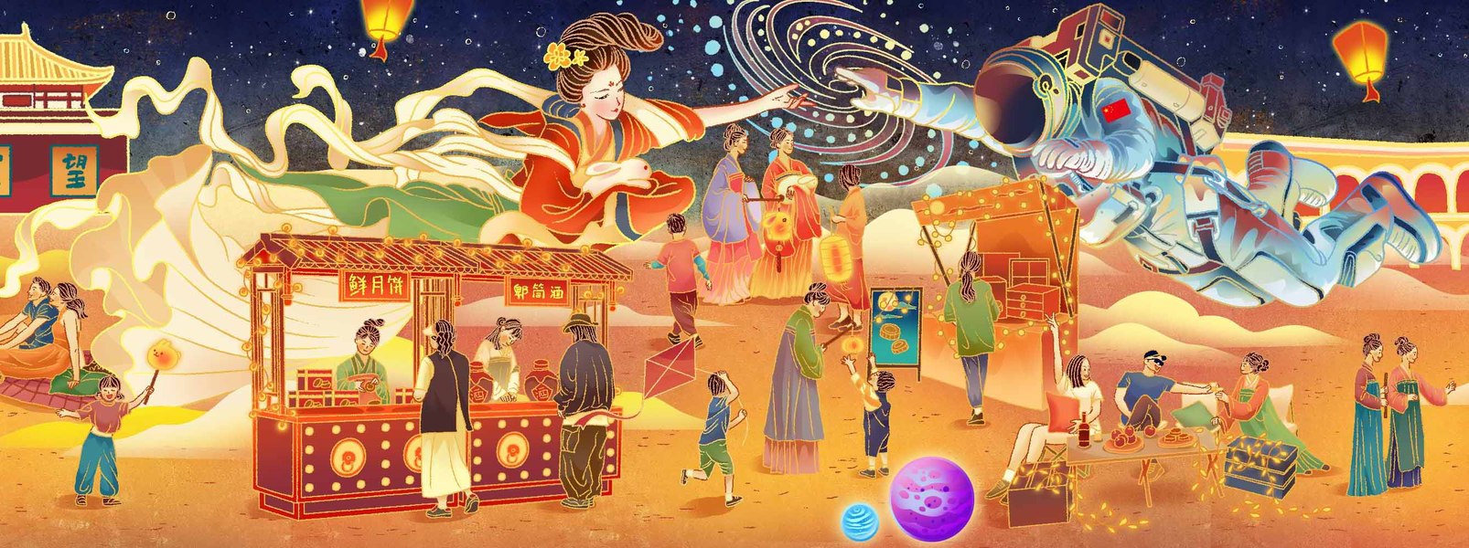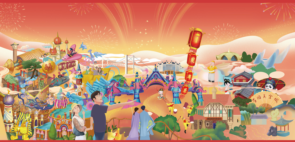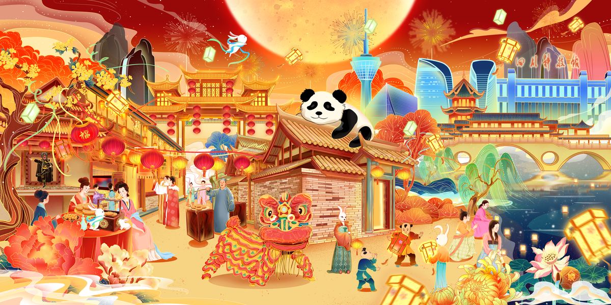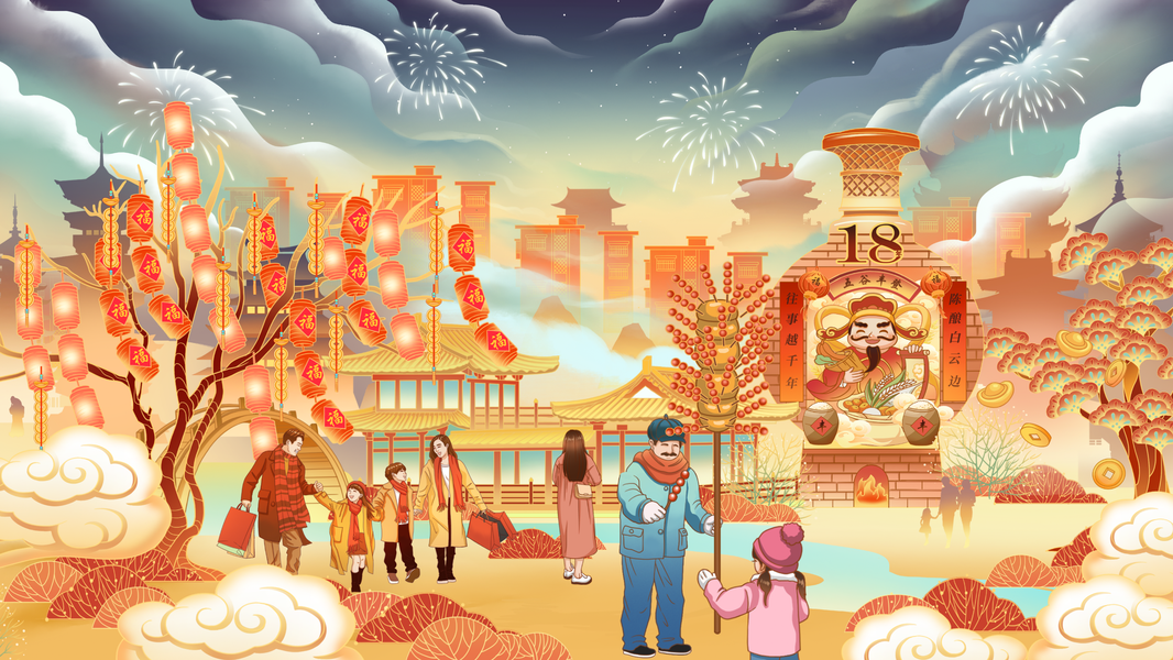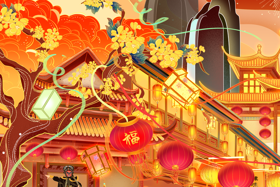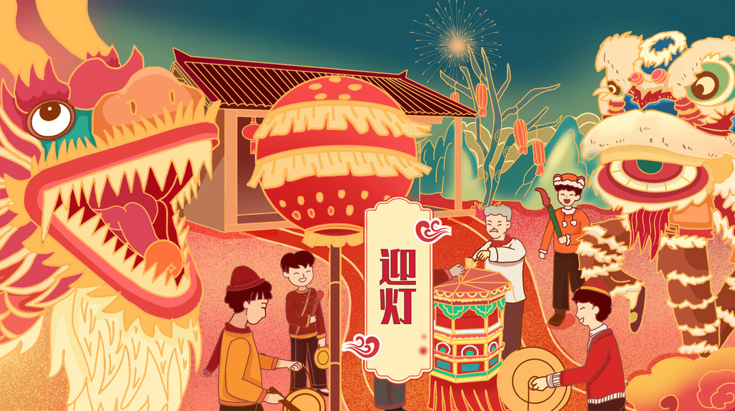 国潮插画长卷丨国家非遗—忠信花灯吊灯习俗
