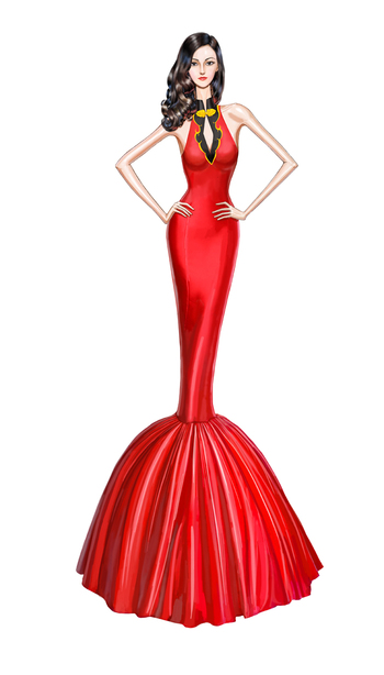 系列时装画《故饰绘》:百年风尚·曼曼民裳(三)