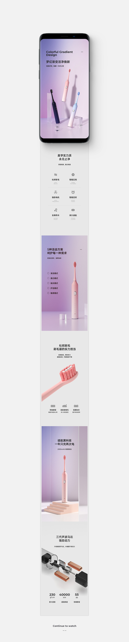 渐变色电动牙刷详情页设计