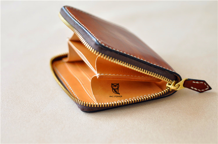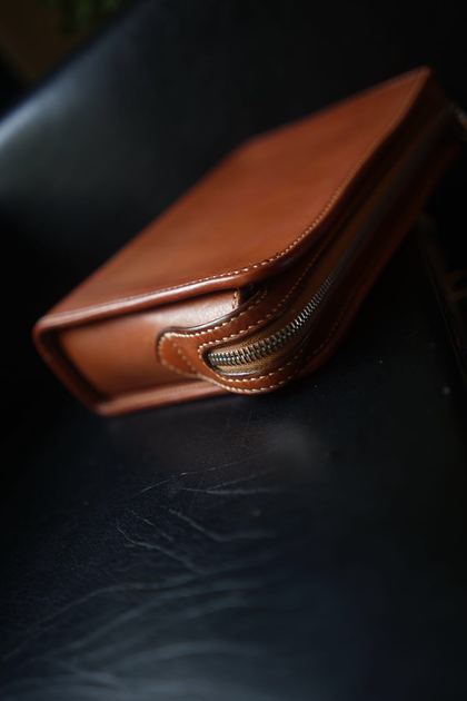 头层牛皮植鞣拉链手包 风琴手拿包 钱包 手工皮具
