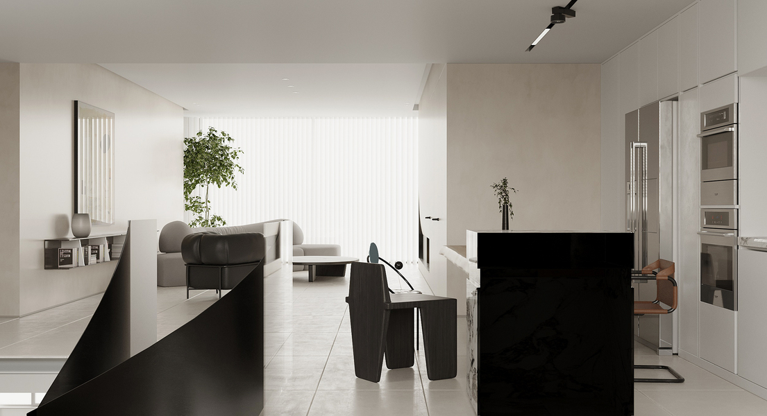 200㎡ 开放式大平层,极简黑白灰 · 讲述留白的艺术!
