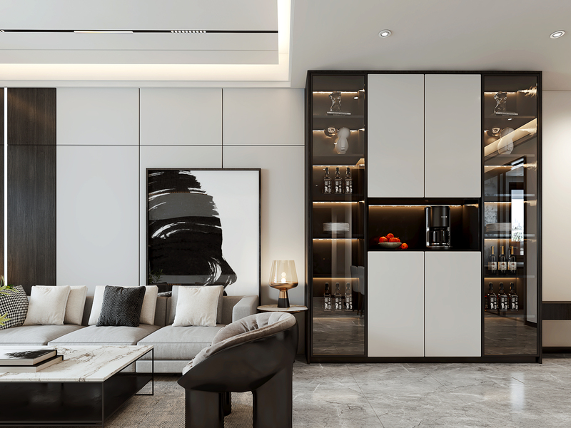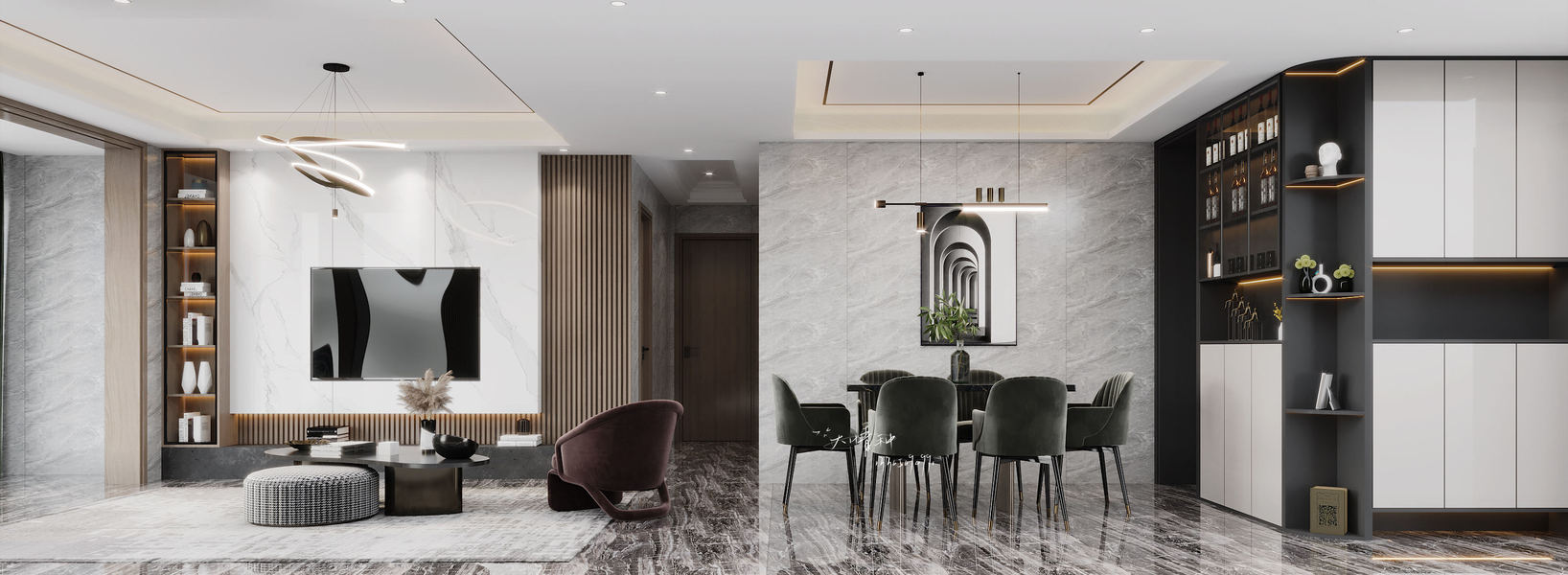 VR4.3 PSCC 黑白灰客餐厅渲染
