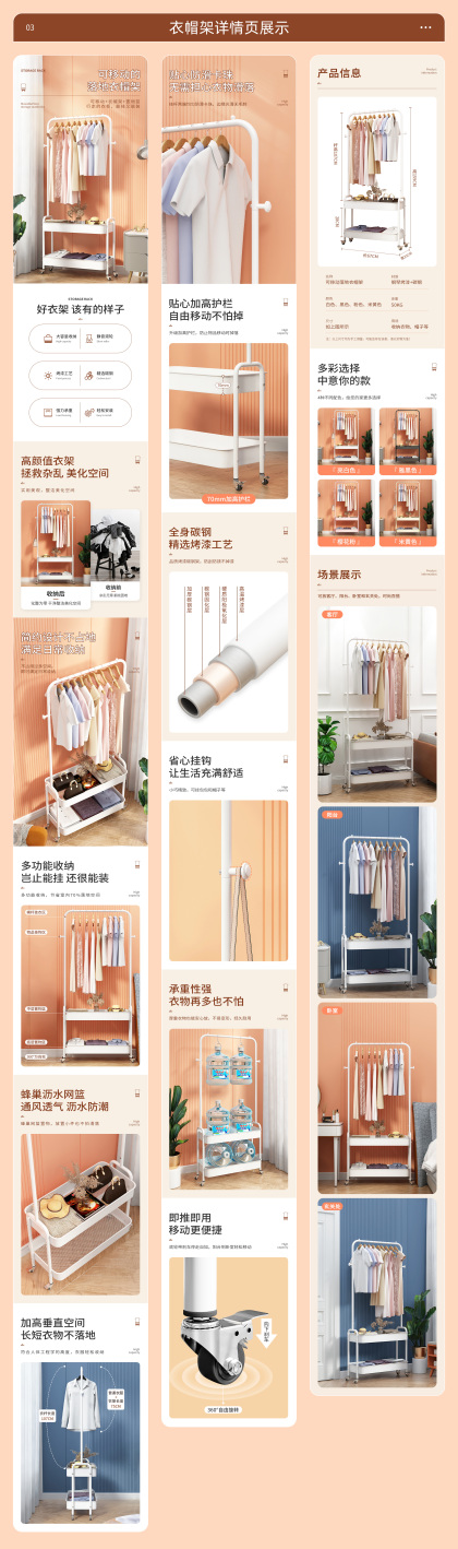 奶油风格产品【晾衣架/置物架/衣架详情页】*3