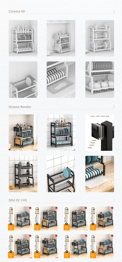 置物架丨厨卫丨平面丨C4D产品渲染 ✖ 德艺电商视觉