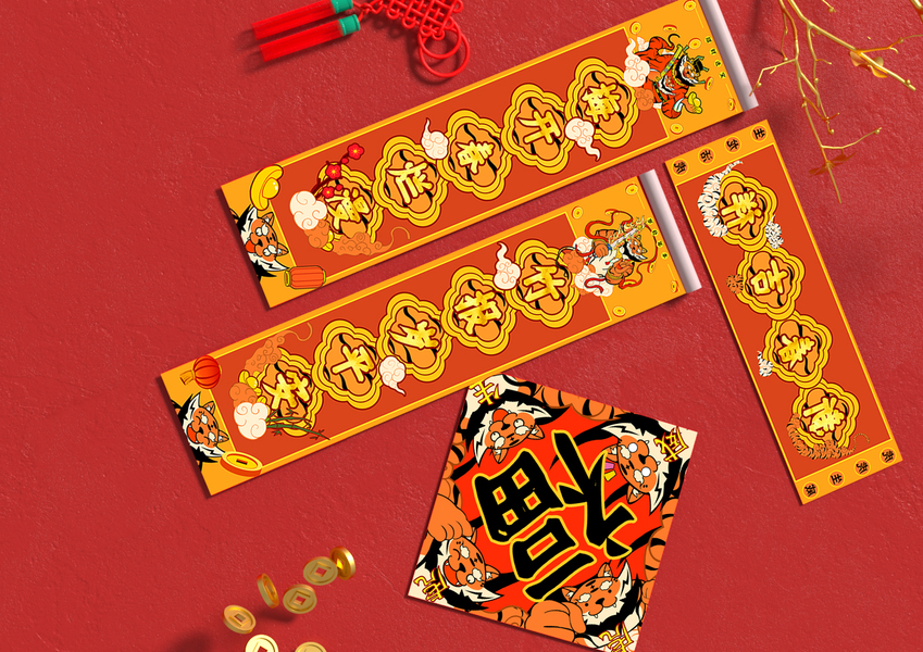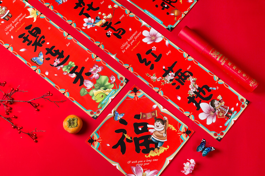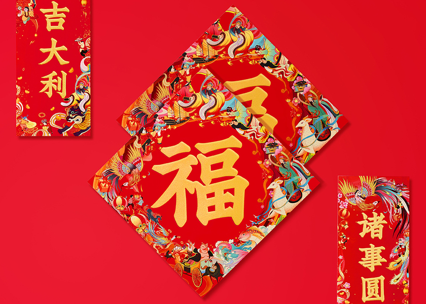 春节对联拍摄,红包,喜糖盒拍摄,高档对联,磁吸对联
