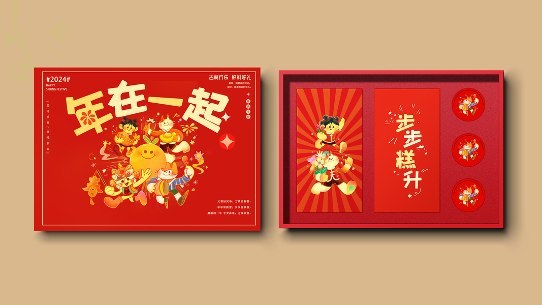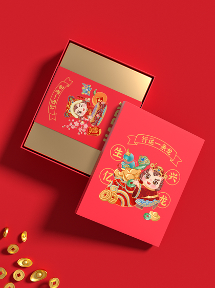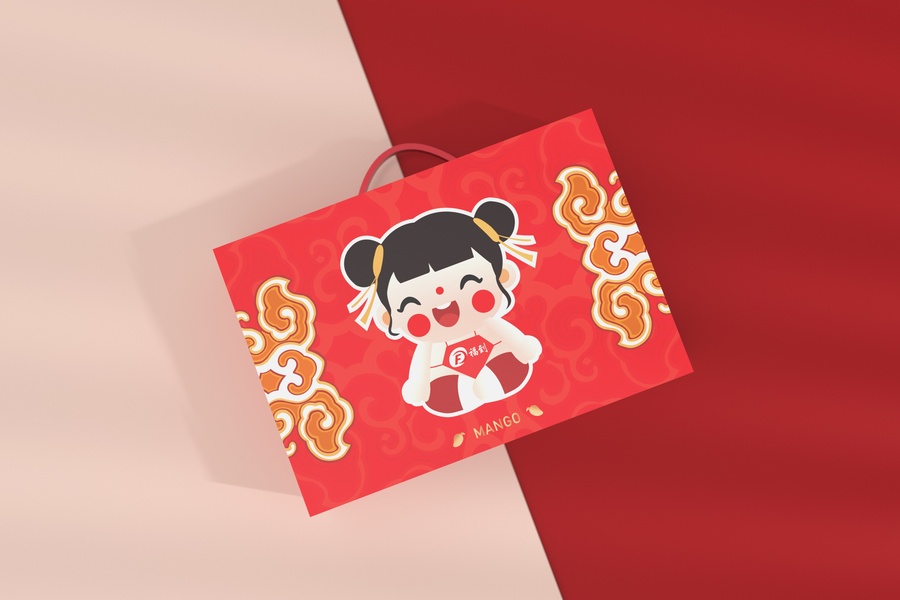 喜庆节日礼盒、食品简约高端大气、芒果水果通用包装盒