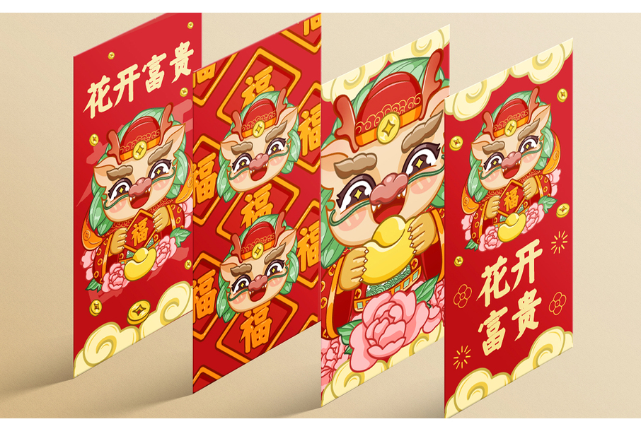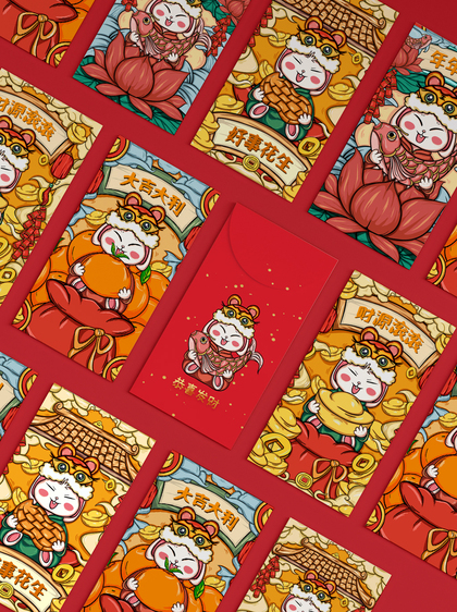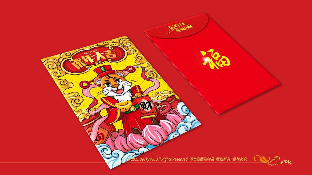 虎年红包设计国潮红包插画财神新年红包新年文创利是封