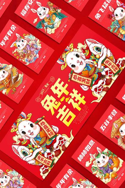 《福兔迎春辞旧岁》兔年生肖IP主题国风系列插画