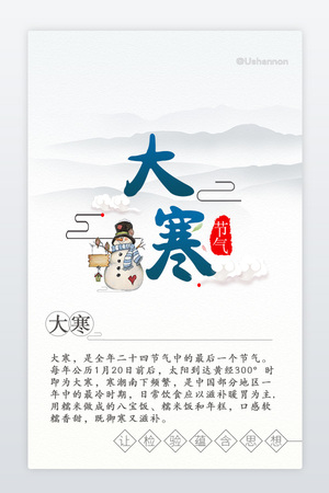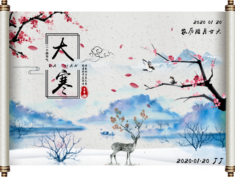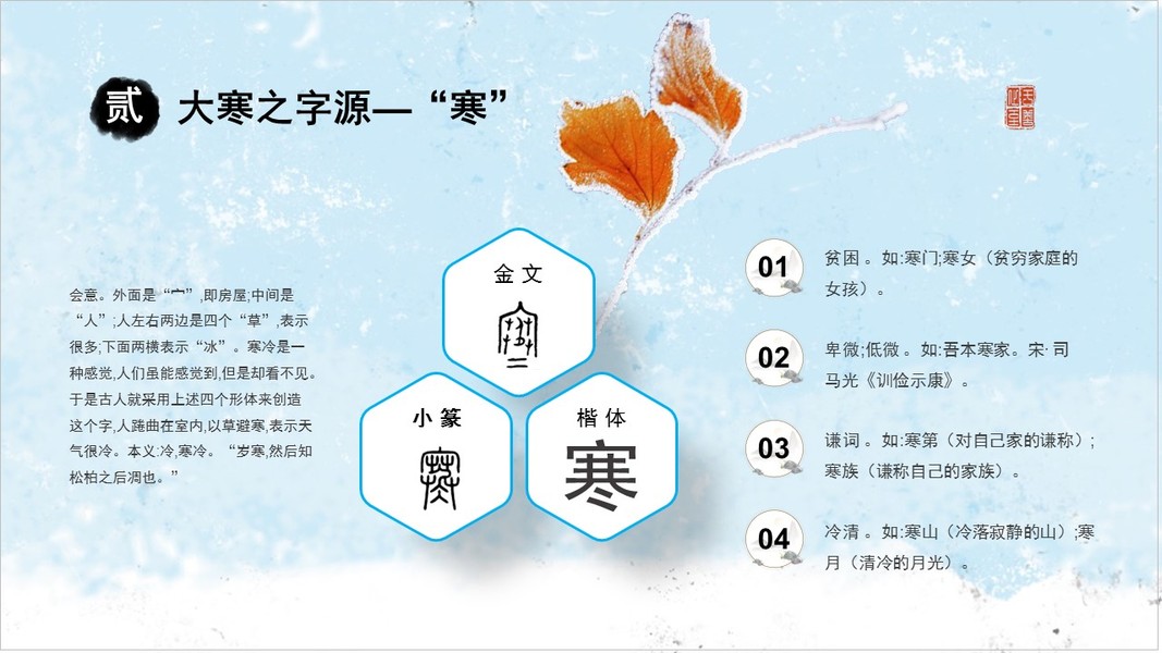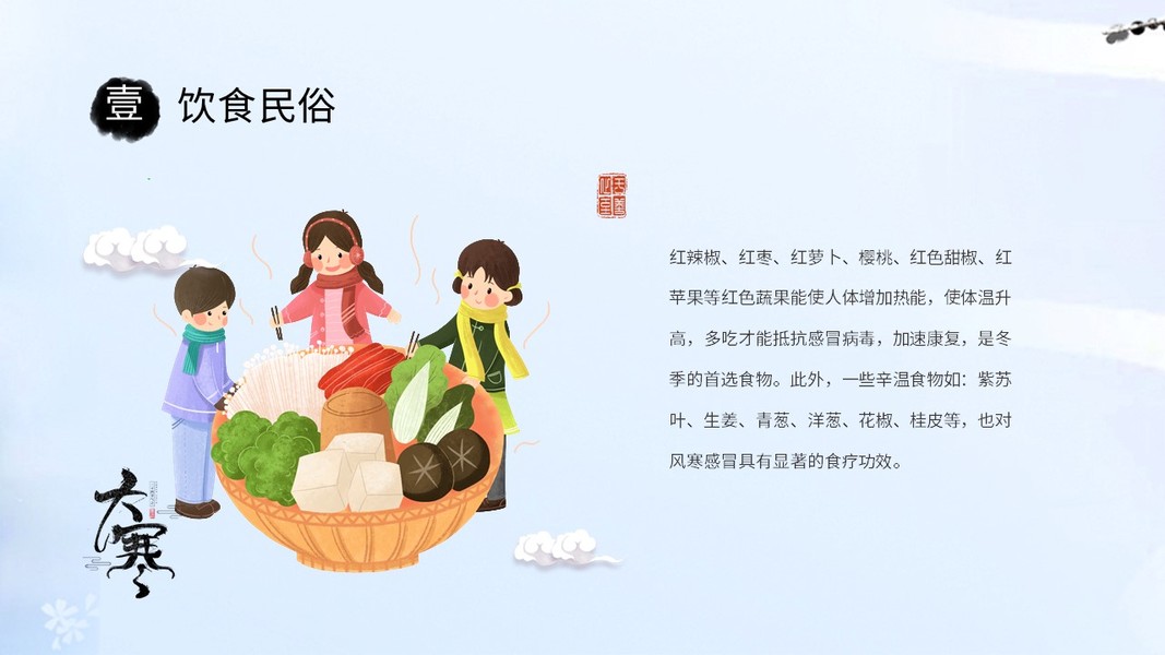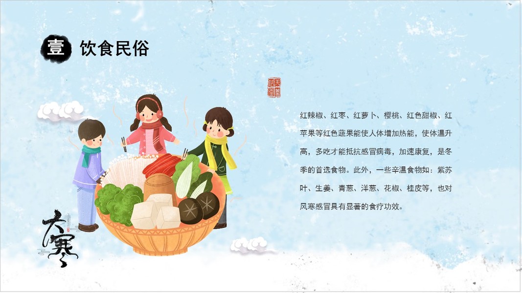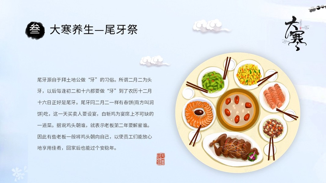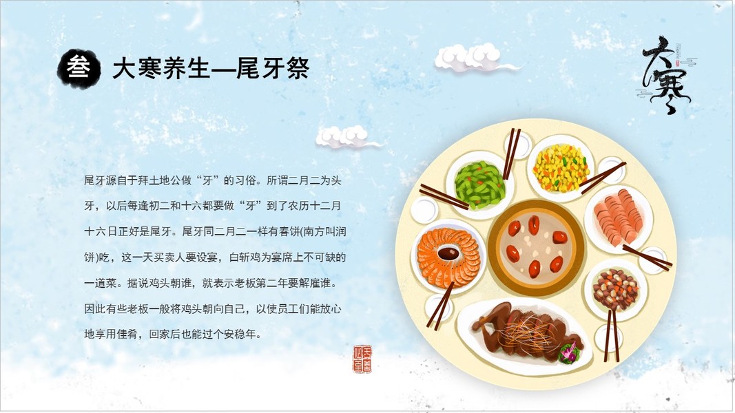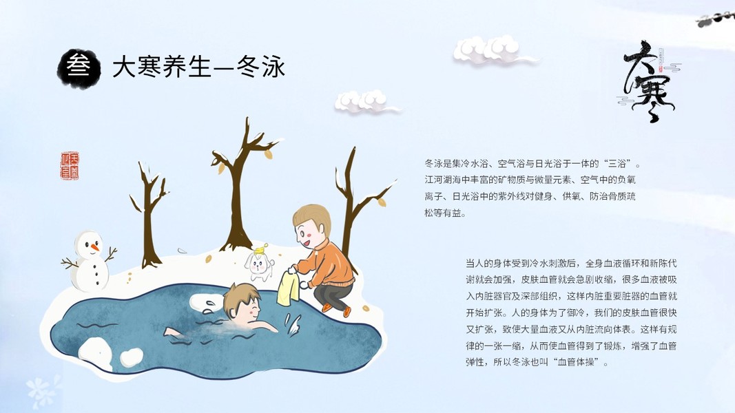 小清新淡蓝色二十四节气大寒文化介绍PPT模板