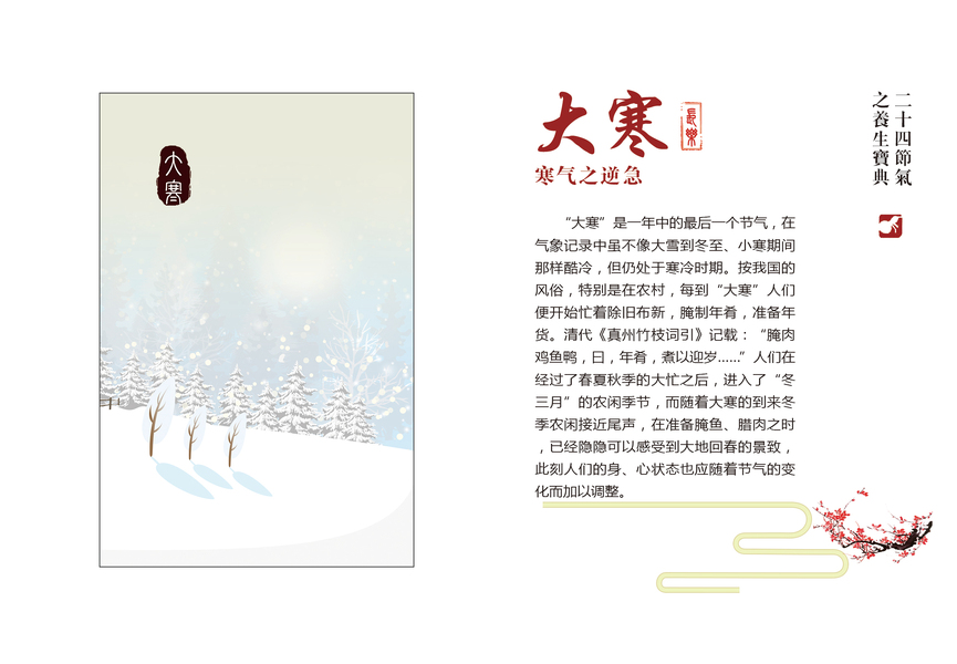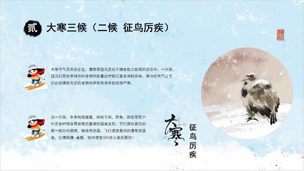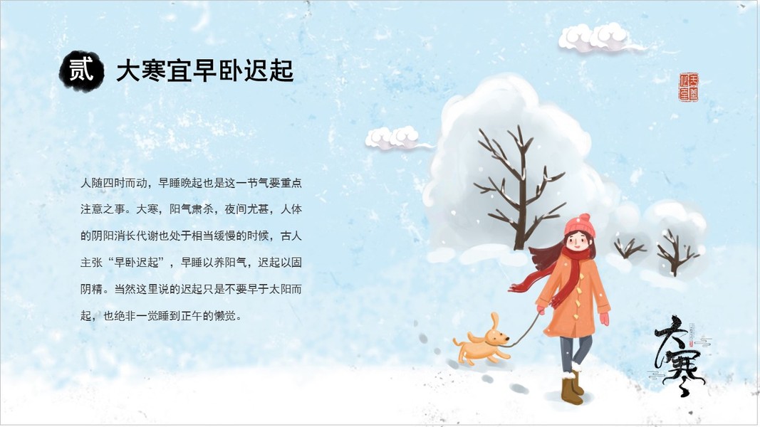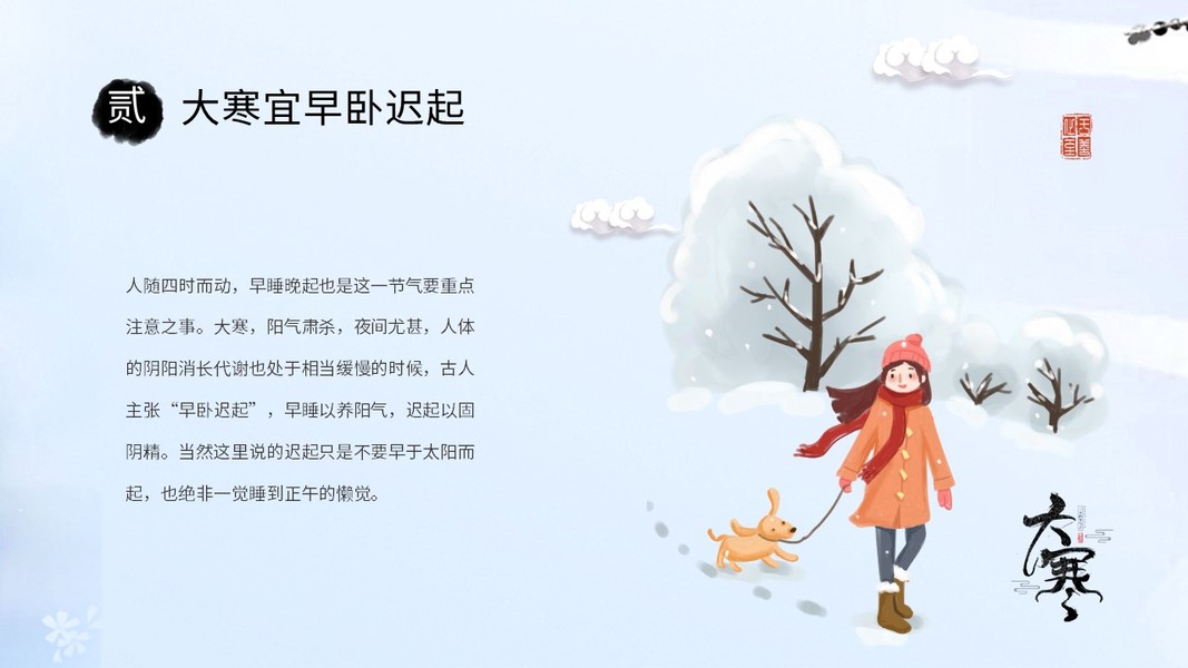 唯美冬日小清新插画风传统二十四节气之大寒PPT模板