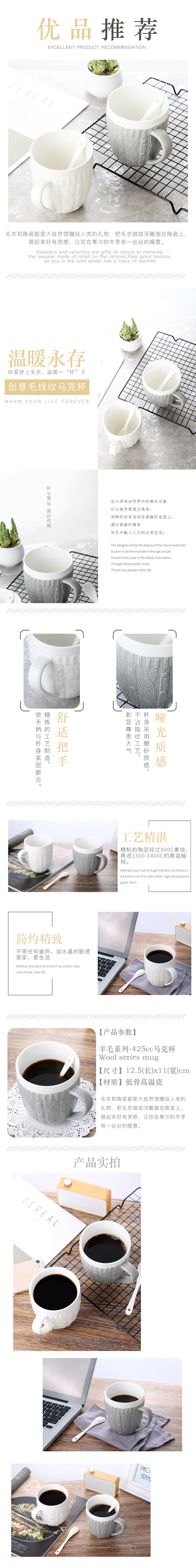 毛线马克杯 陶瓷杯 飞机稿 详情页 电商