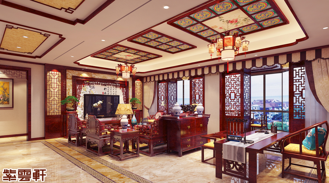 如诗如画般的别墅中式装修客厅,充满古典韵