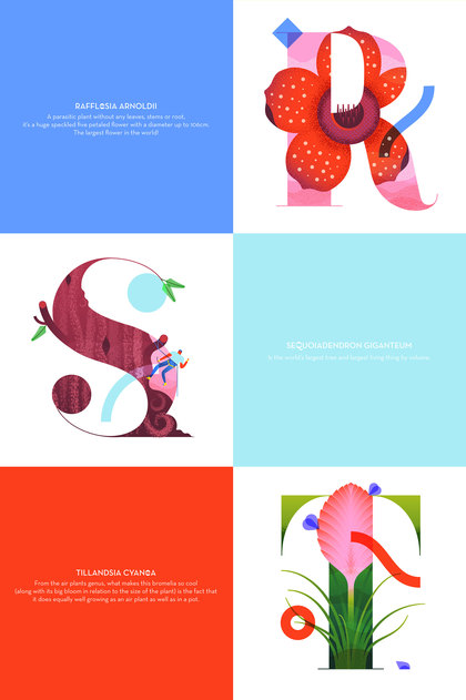 Lorena以首字母从A-Z的植物为题材,设计的视觉海报。