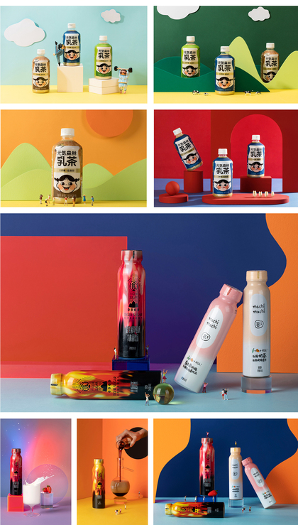 今麦郎橙色风车奶茶饮料包装设计瓶型造型设计logo设计