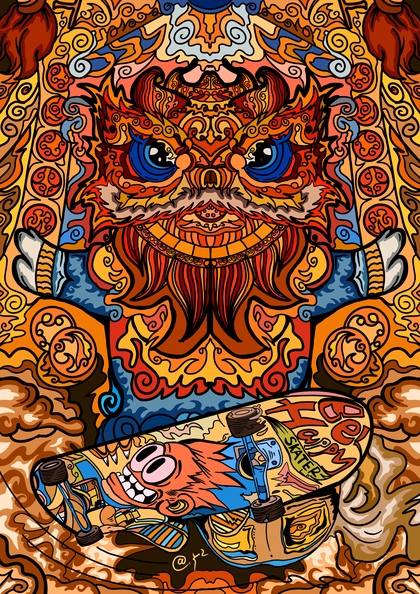 舞狮与滑板🛹有趣结合