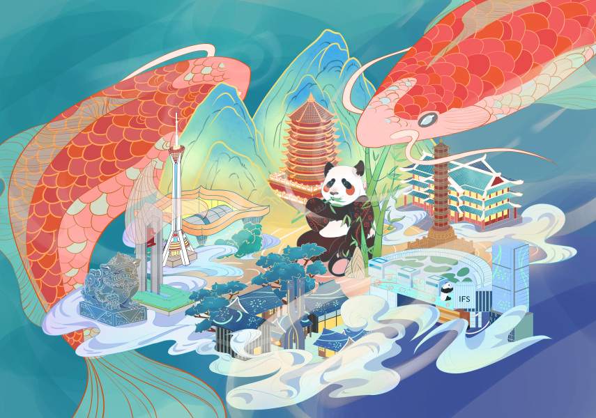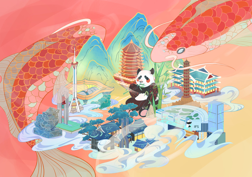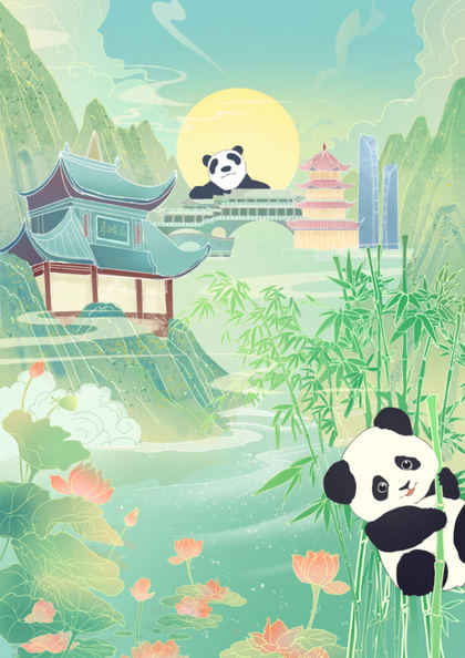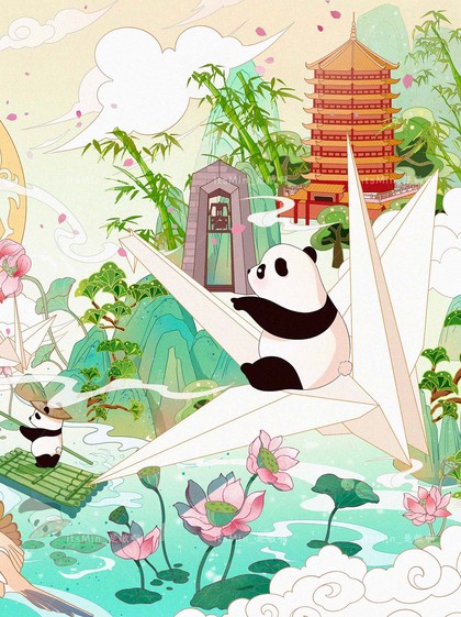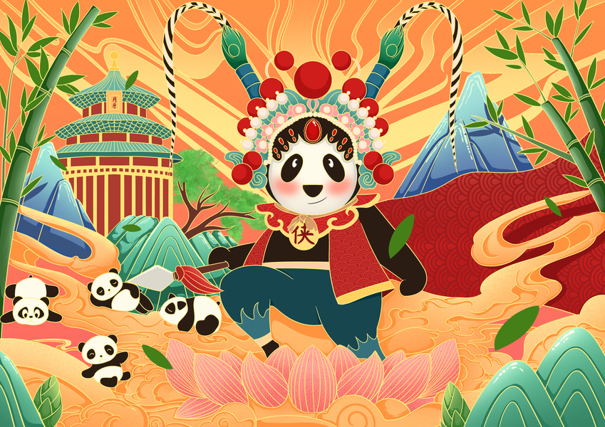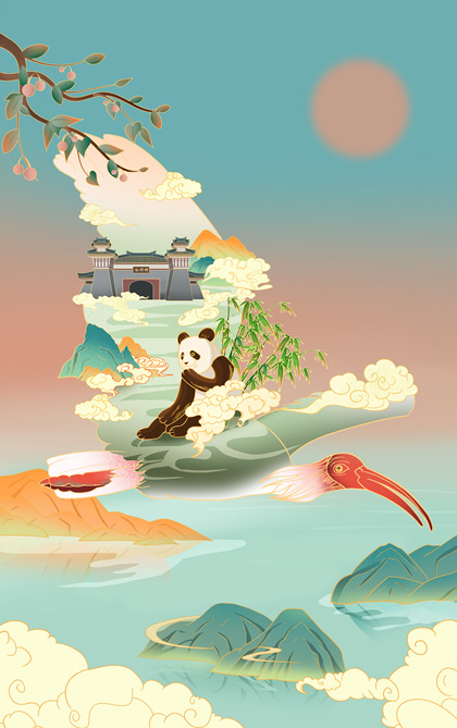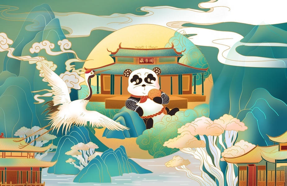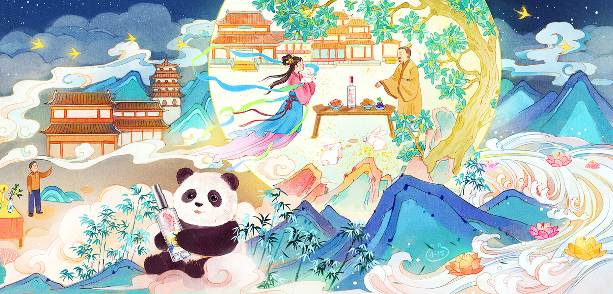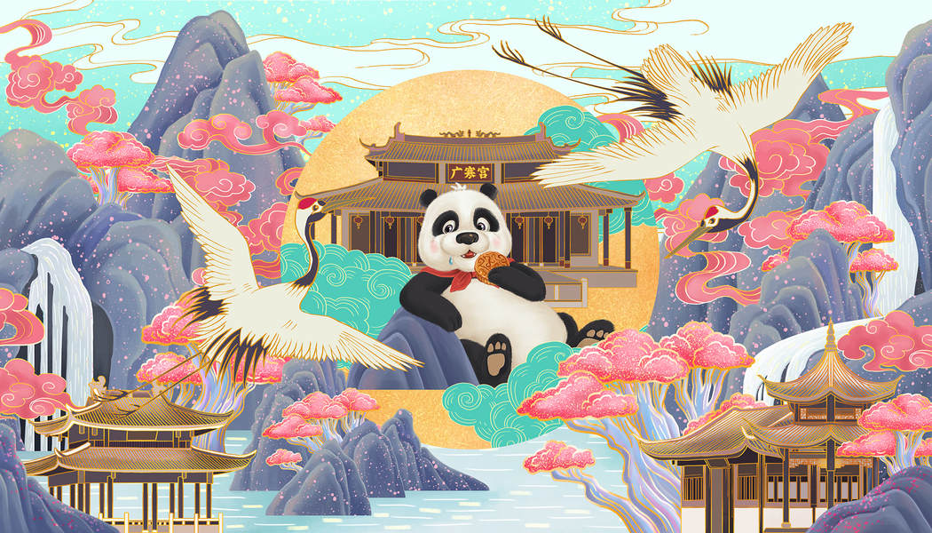 阿福熊×陈周周 中秋月饼礼盒包装插画