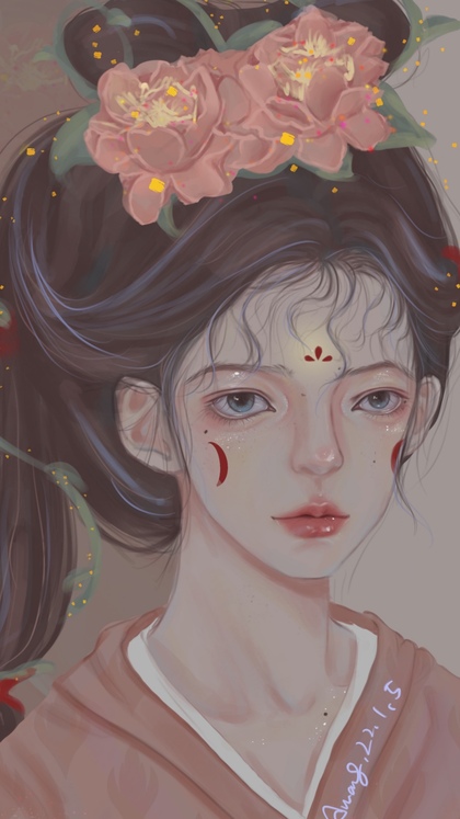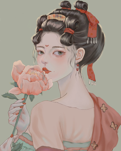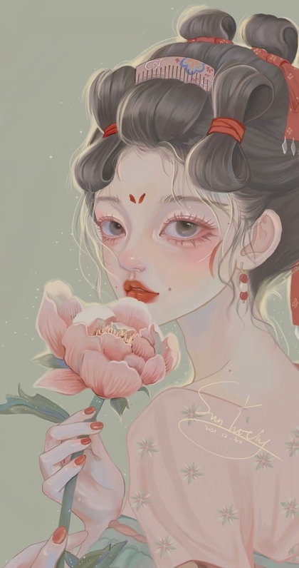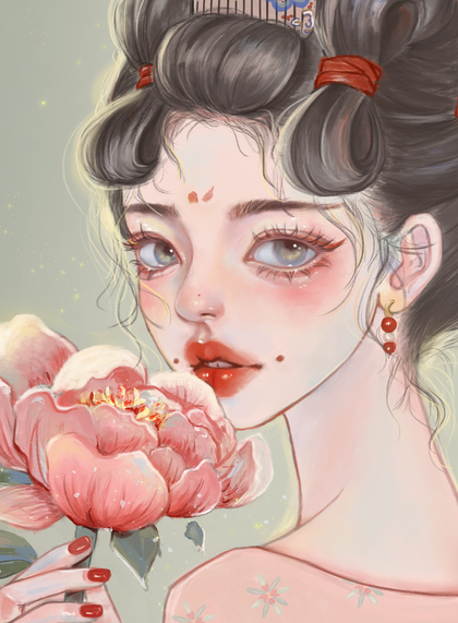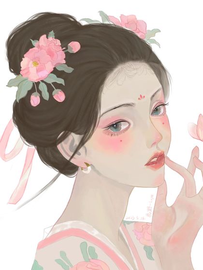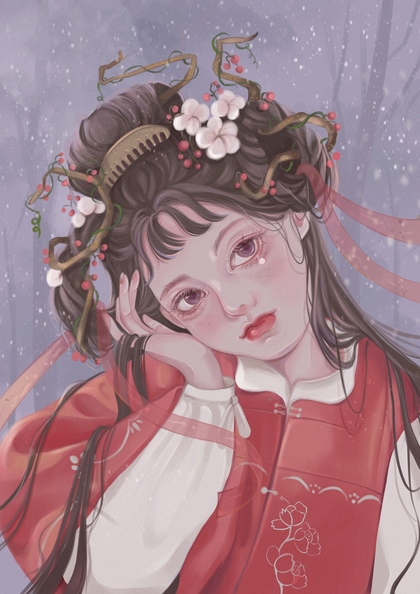 古风豆蔻少女手绘插画