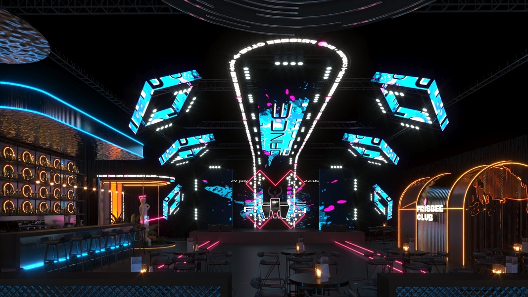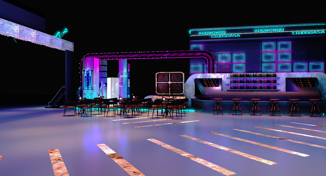 塞班朋克主题失重街区快闪路演设计3D效果图