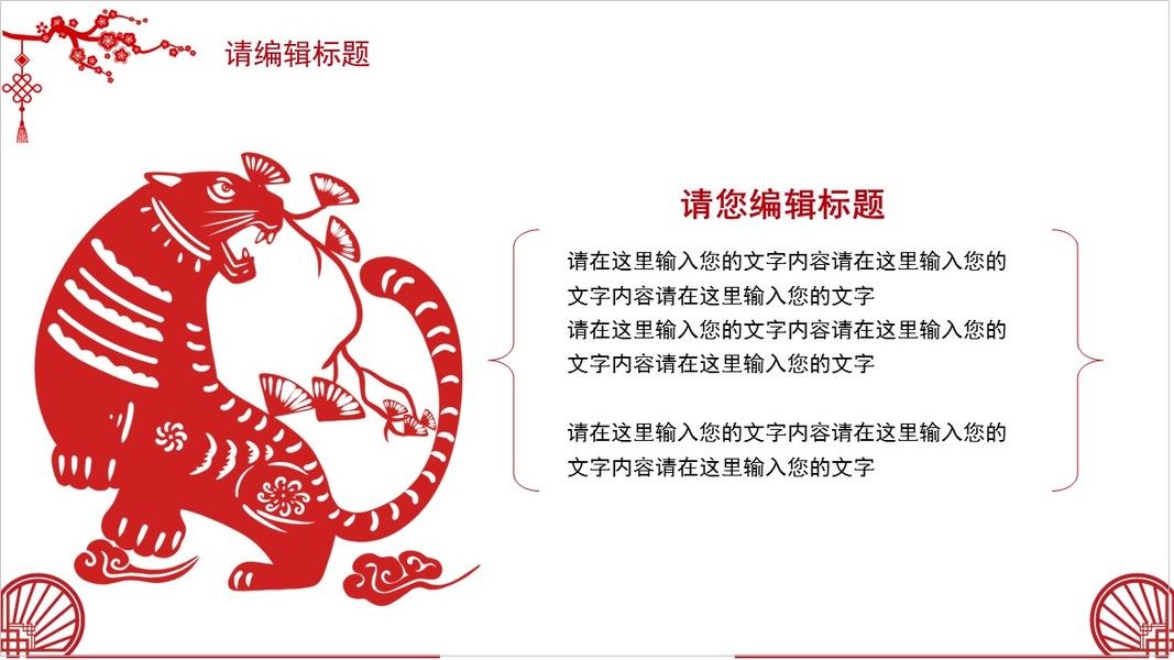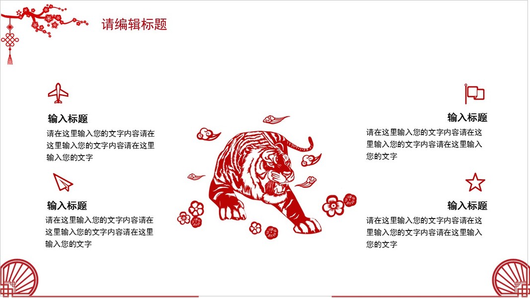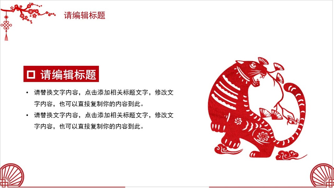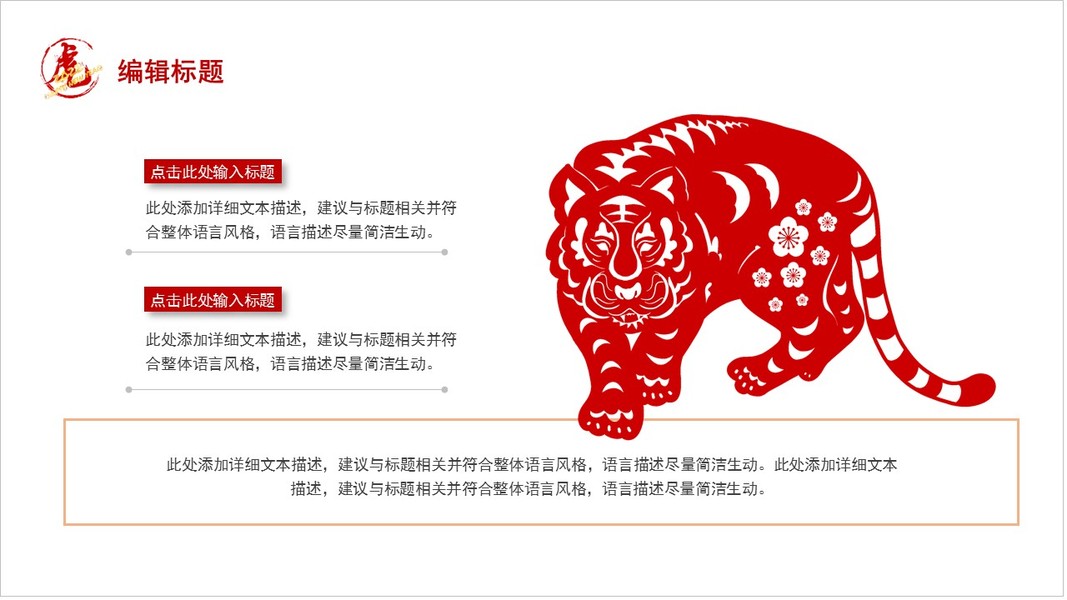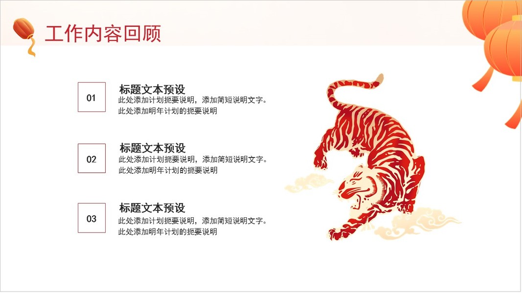 金虎贺岁简约红色商务工作总结计划PPT模板