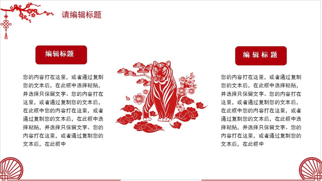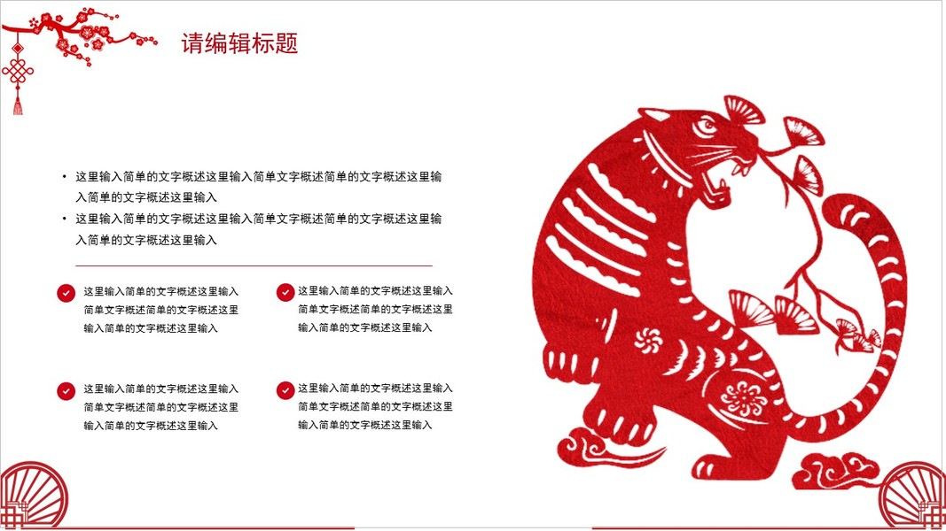 简洁红色虎年新春工作总结汇报通用PPT模板