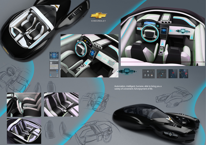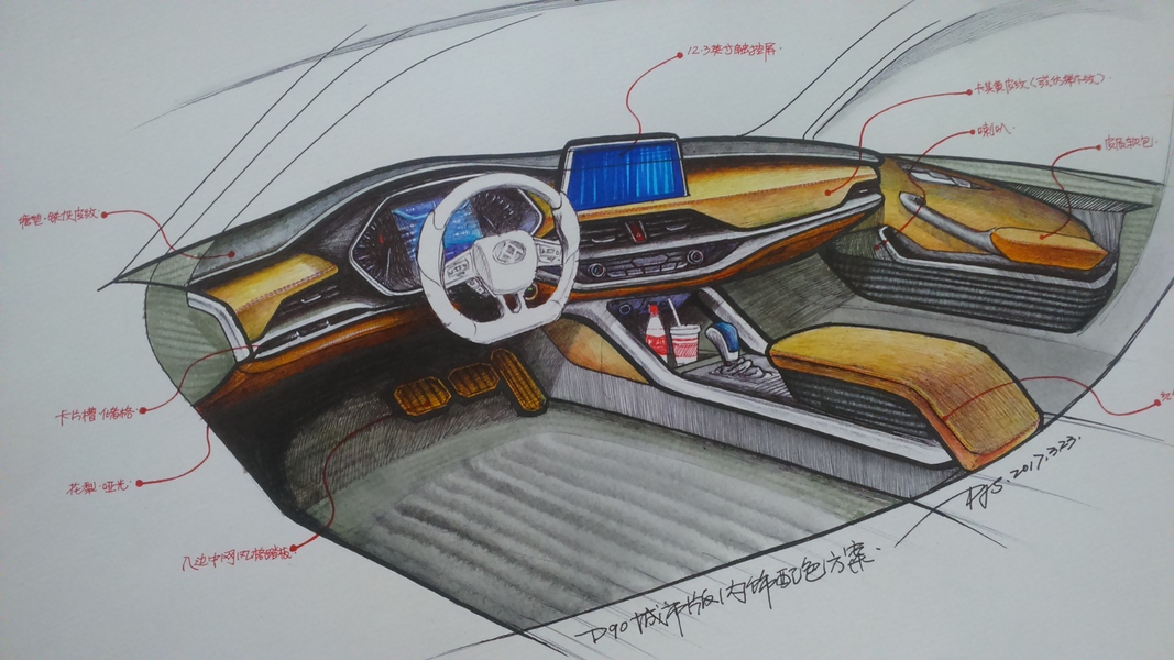 圆珠笔加水彩笔,汽车内饰及配色方案