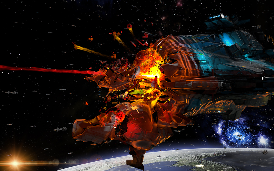 外星三体水滴探测器第一次接触人类太空战舰