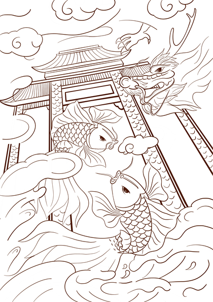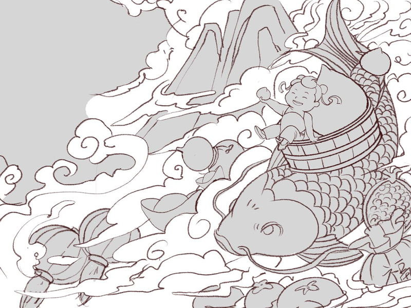 2023端午节礼盒包装插画/粽享端午/遇龙