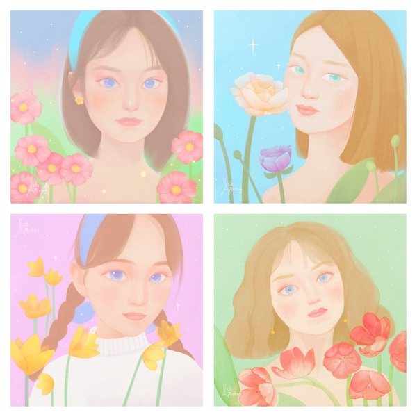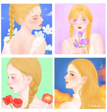 #少女与花#头像插画