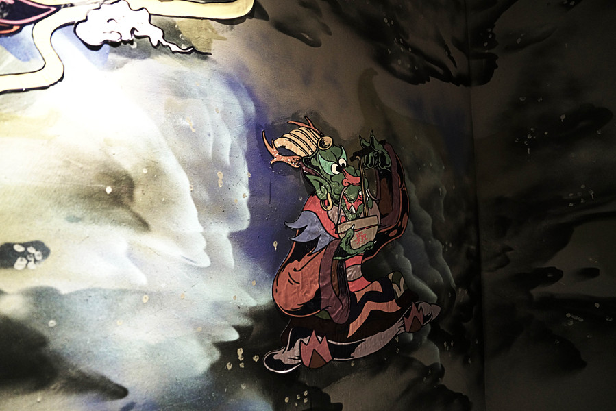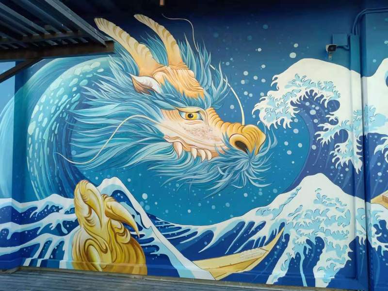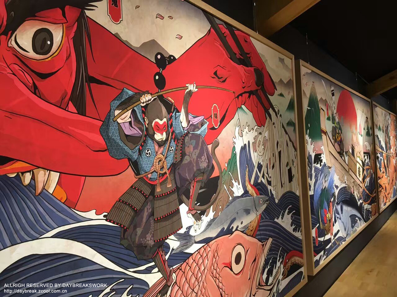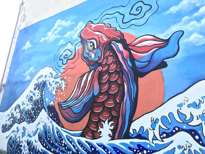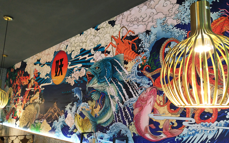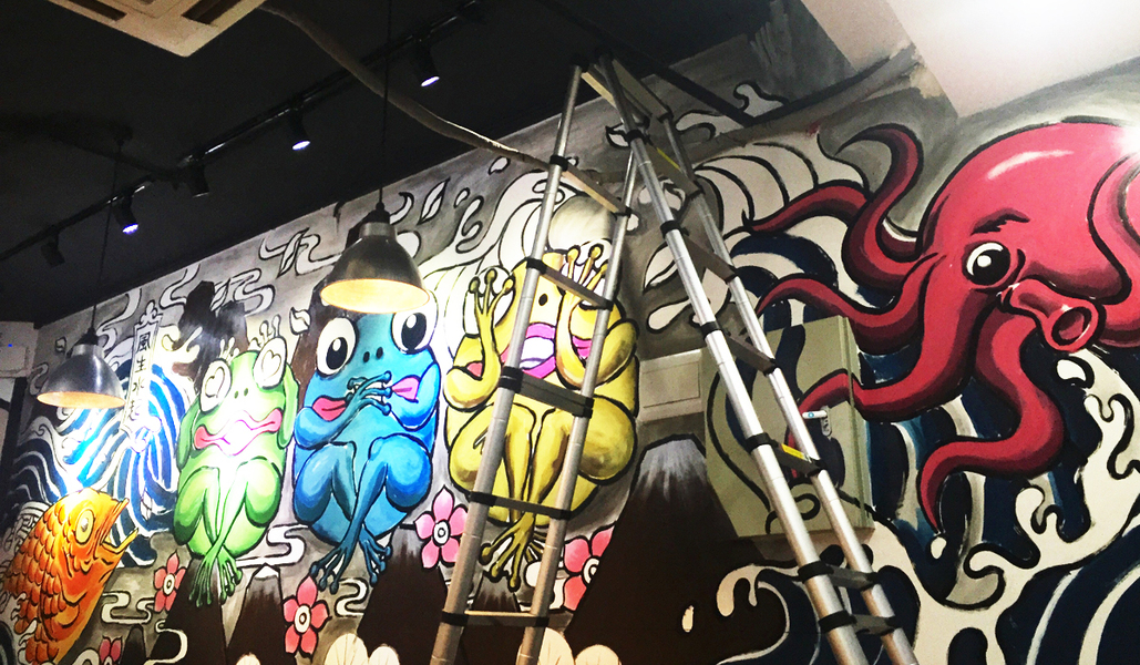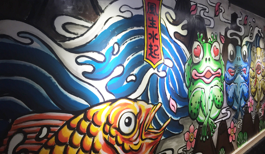 辣里有蛙牛蛙烤鱼店墙绘涂鸦