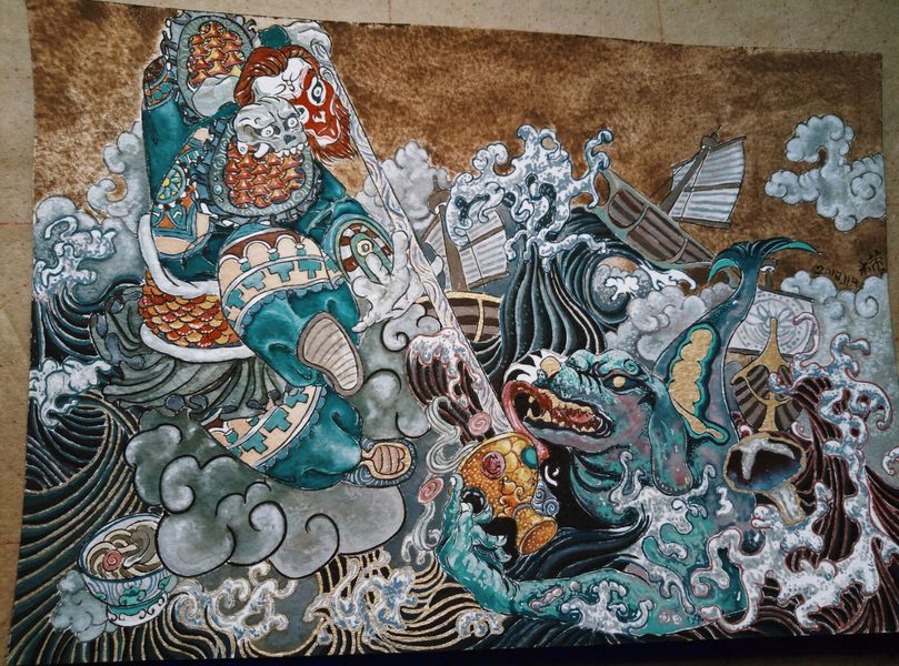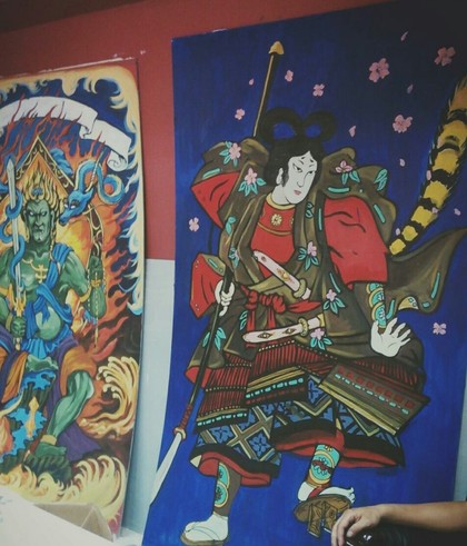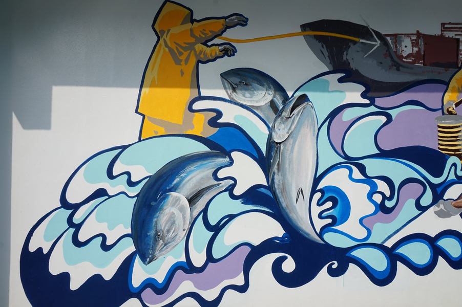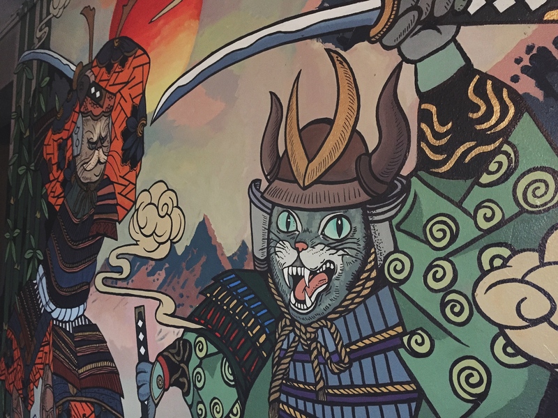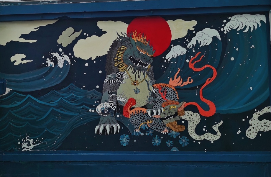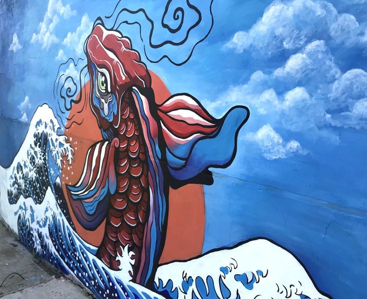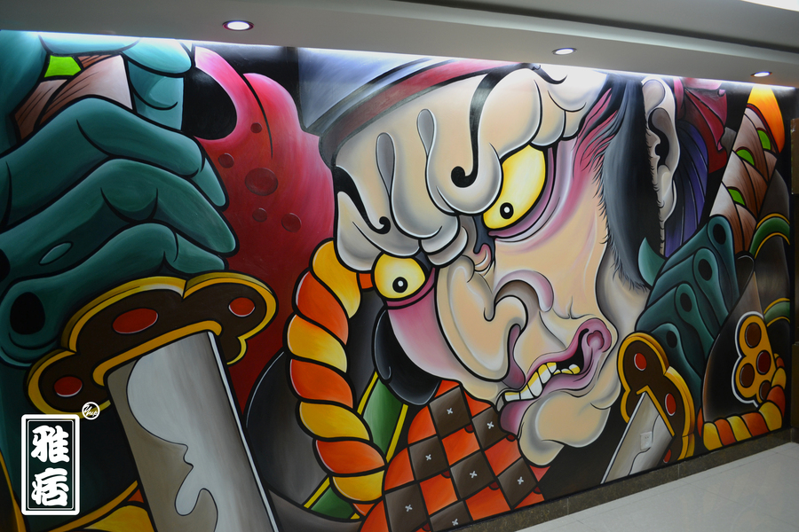 辣里有蛙牛蛙烤鱼店墙绘涂鸦