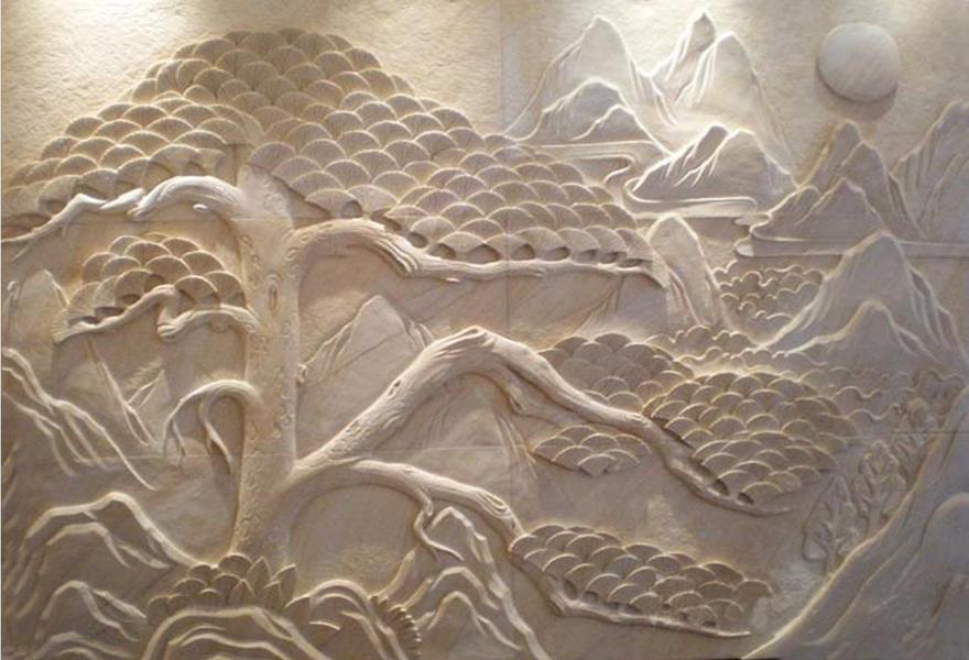皮雕背景墙;刺绣背景墙;浮雕背景墙;镶嵌及车线背景墙