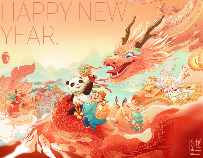 2023福贺新春 ——国潮插画舞狮篇 、对联篇