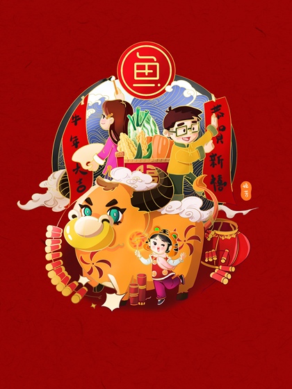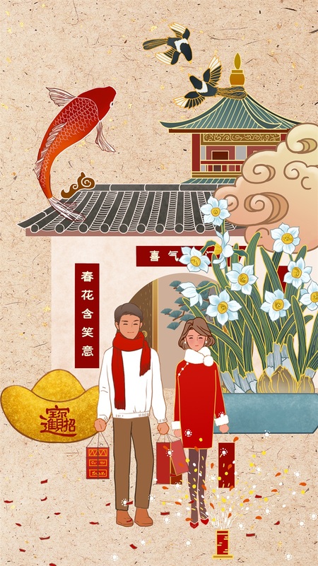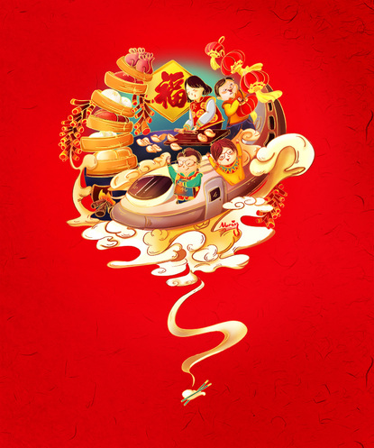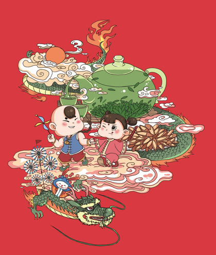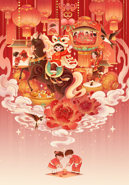 2025蛇年新年主题插画【瑞蛇送福-新春大吉】