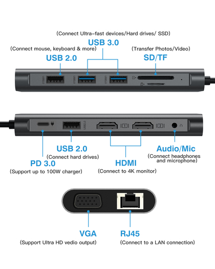 wavlink(睿因)usb c 三频拓展坞(4k)