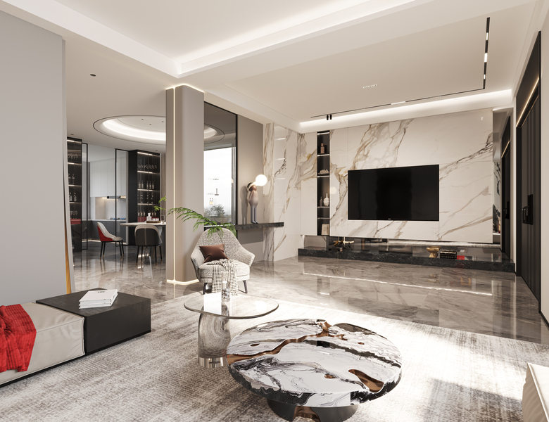 轻奢现代风客餐厅效果图表现
